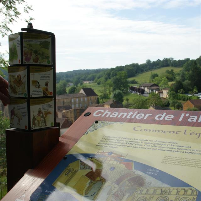 Aux confins du Périgord Pourpre et du Périgord Noir, au Pays de Bergerac, le village de Cadouin blotti autour de son abbaye, est un havre de paix au cœur de la forêt de la Bessède. Après avoir visité l'abbaye, vous pourrez suivre le sentier des paysages qui prolongera votre visite. Ce sentier composé de 5 étapes vous propose des regards différents sur l'abbaye et le village. Il vous invite à découvrir le paysage et son évolution depuis l'époque médiévale jusqu'à aujourd'hui.
