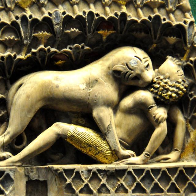 43 sObservez dans la salle 57 ou 59 cette pièce en ivoire et lapis-lazuli.